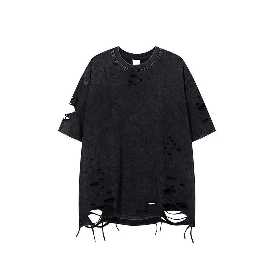 เสื้อยืดลายล้างกรดออกแบบได้ตามต้องการเสื้อยืดคอกลมสไตล์เฮฟวีเวตเสื้อลำลองสไตล์สตรีทแวร์ไม่มีลาย