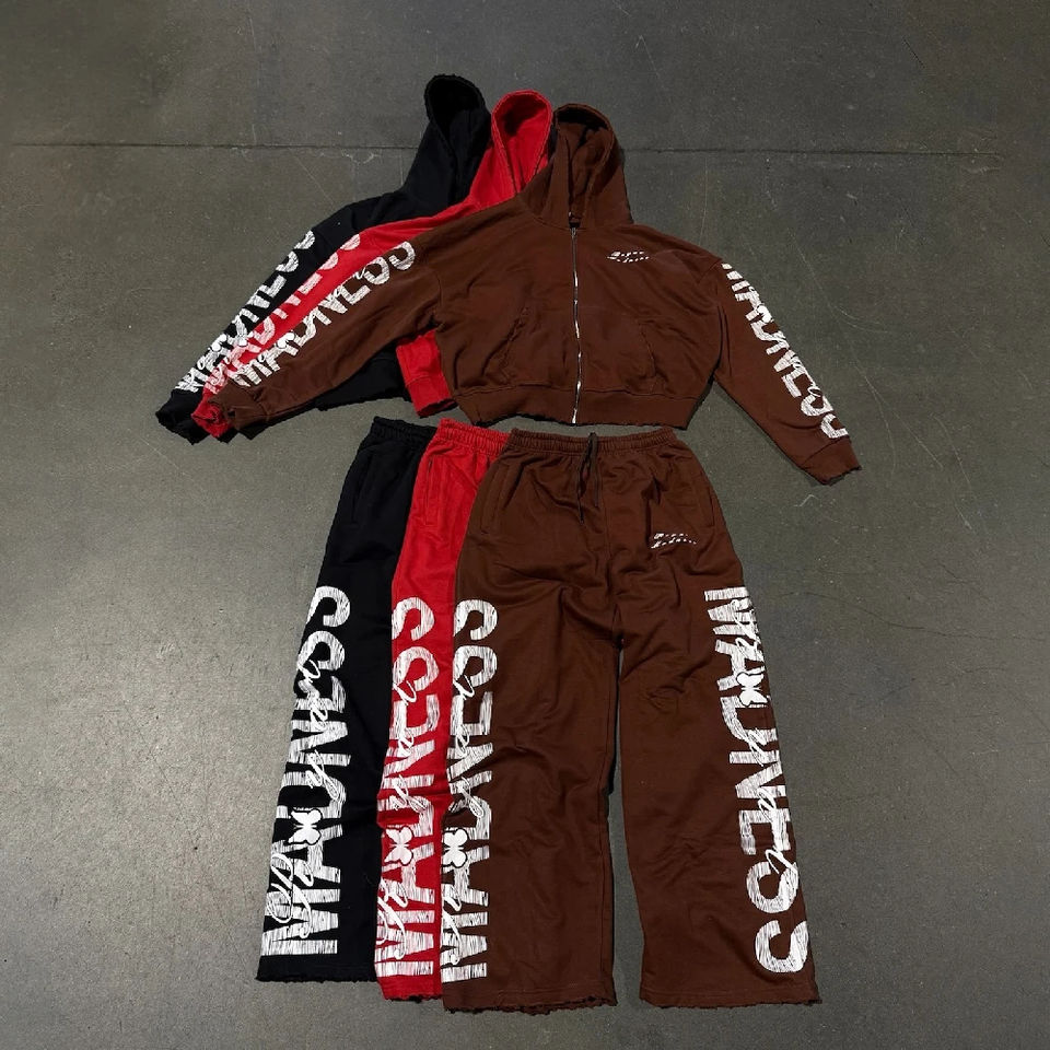 ชุดวอร์มสไตล์วินเทจสำหรับผู้ชายชุดวอร์มปักลายผ้าปะติด400GSM ซักแบบแห้งกรดออกแบบได้ตามต้องการ