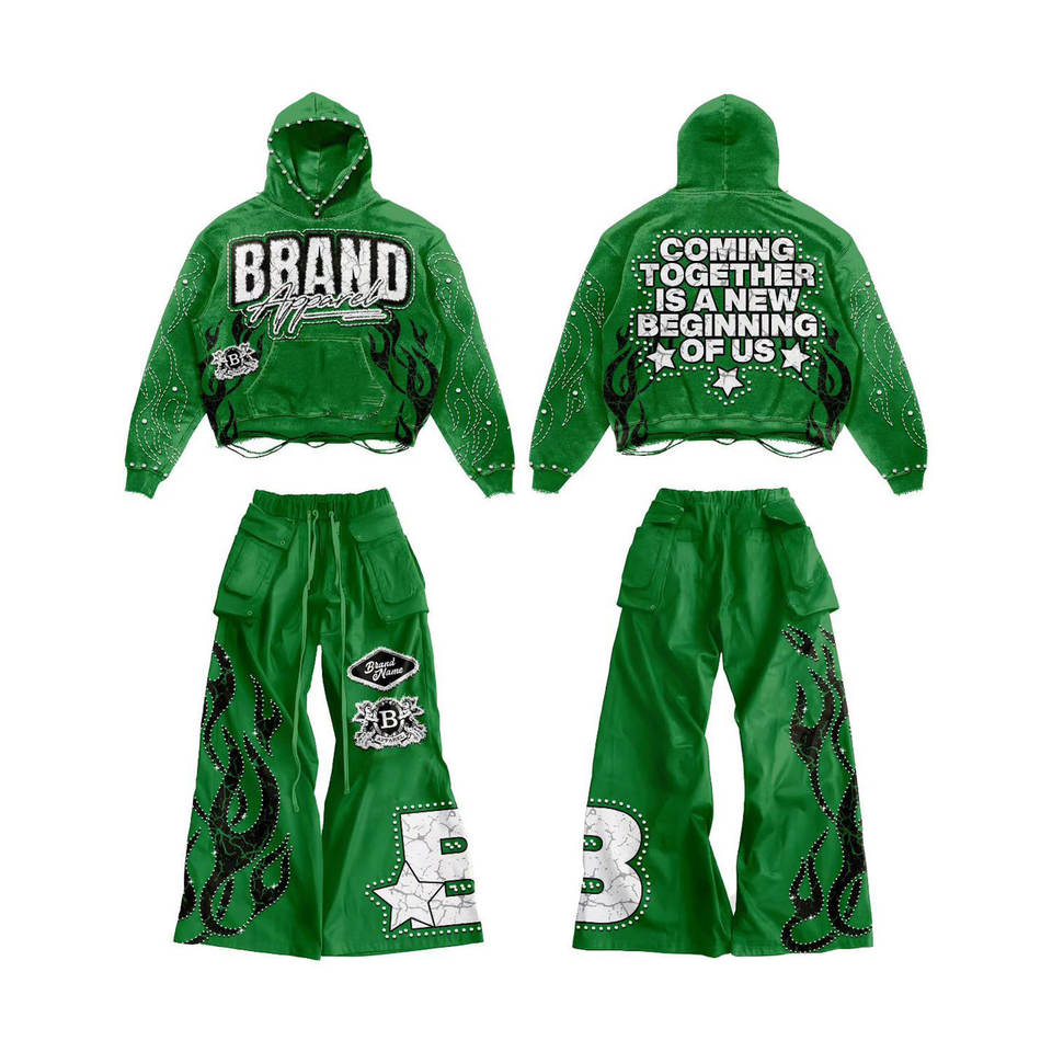 ชุดวอร์มทรงบานปักลายสไตล์วินเทจแบบทำสีซีด แต่งคริสตัลพิมพ์ลาย OEM แฟชั่นสตรีทแวร์สุดฮิต