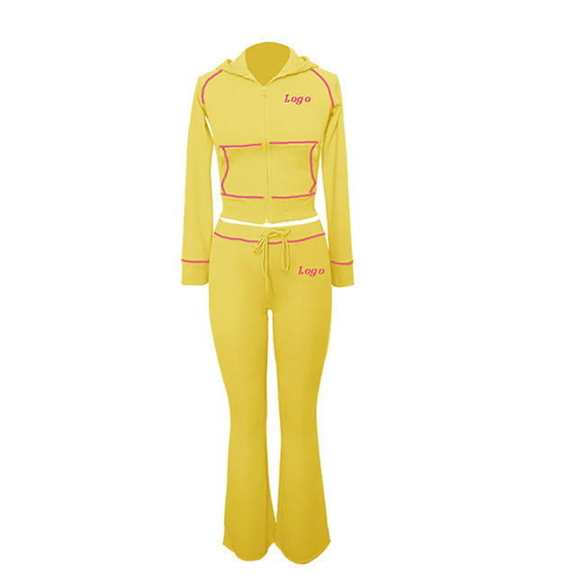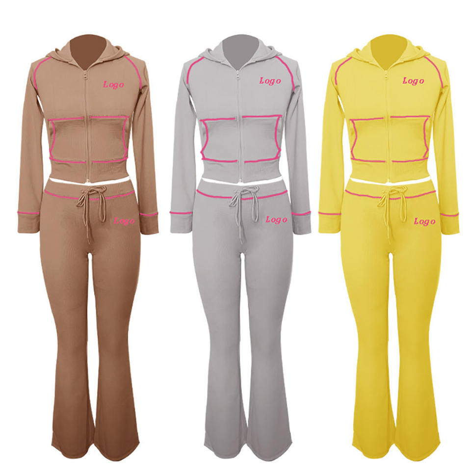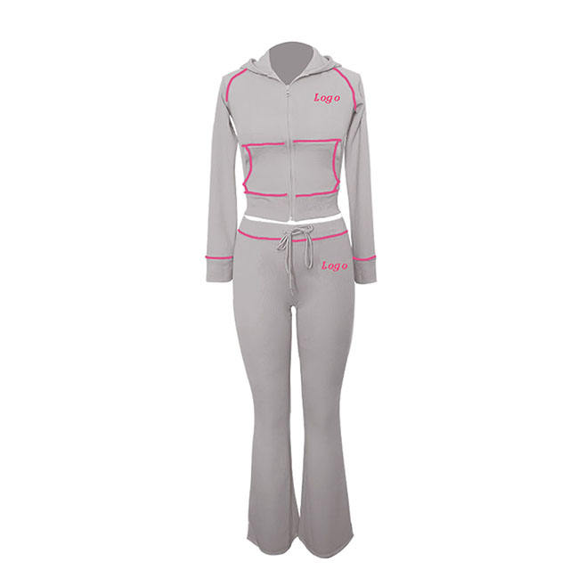 ชุดวอร์มสองชิ้นสำหรับผู้หญิงชุดวอร์มมีซิปมีฮู้ดปักลาย