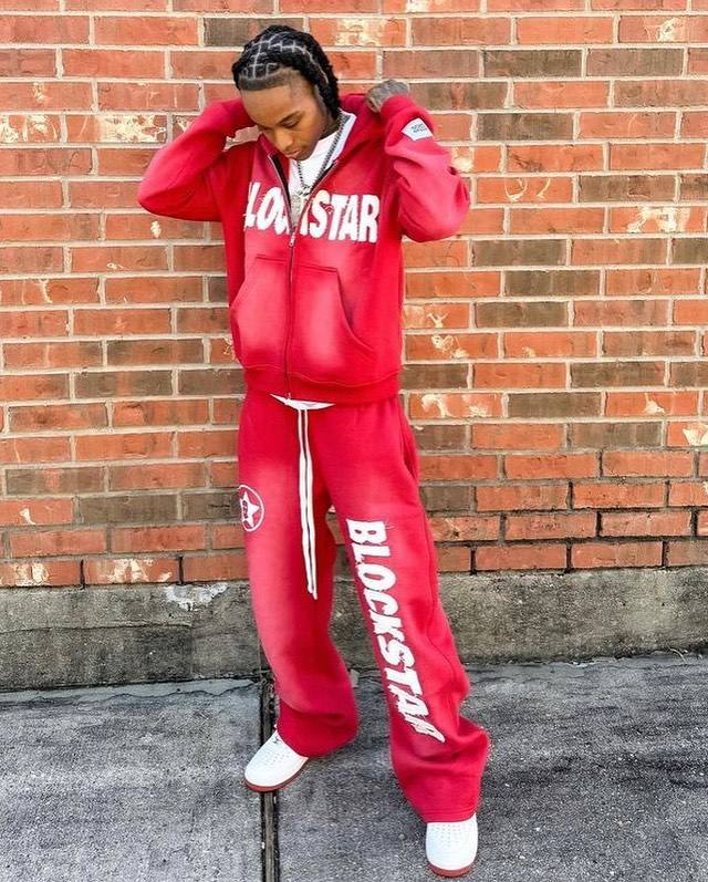 ชุดเซ็ตเสื้อฮู้ดและกางเกงวอร์มทรงขาบาน ผ้าหนานุ่ม ระบายอากาศได้ดี สไตล์วินเทจ พร้อมโลโก้แบบดิสเทรส สำหรับการฝึกซ้อม