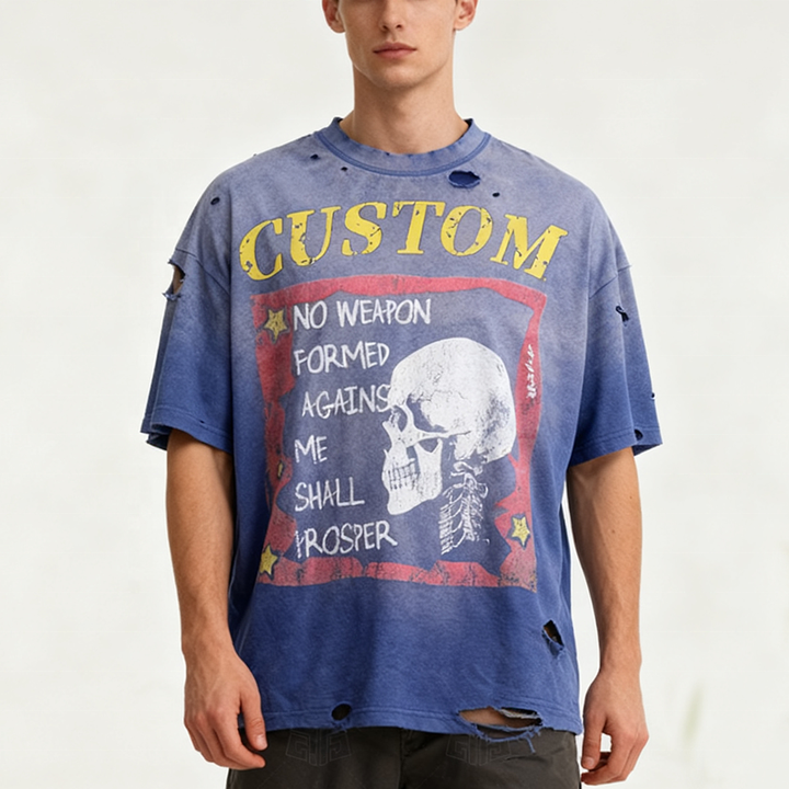 เสื้อยืดผู้ชายสไตล์วินเทจ ลุคสตรีทแวร์ ทรงโอเวอร์ไซส์ ตัดเย็บแบบครอป ไหล่ตก ผ้าหนา ล้างสีแบบแอซิดวอช