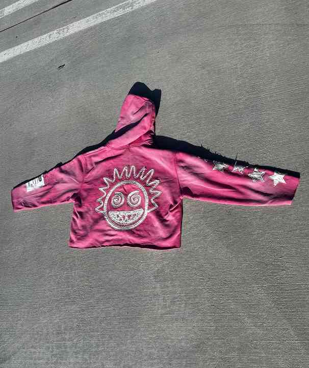 เสื้อฮู้ดโอเวอร์ไซส์วินเทจแบบมีซิปปักโลโก้แบบกำหนดเอง