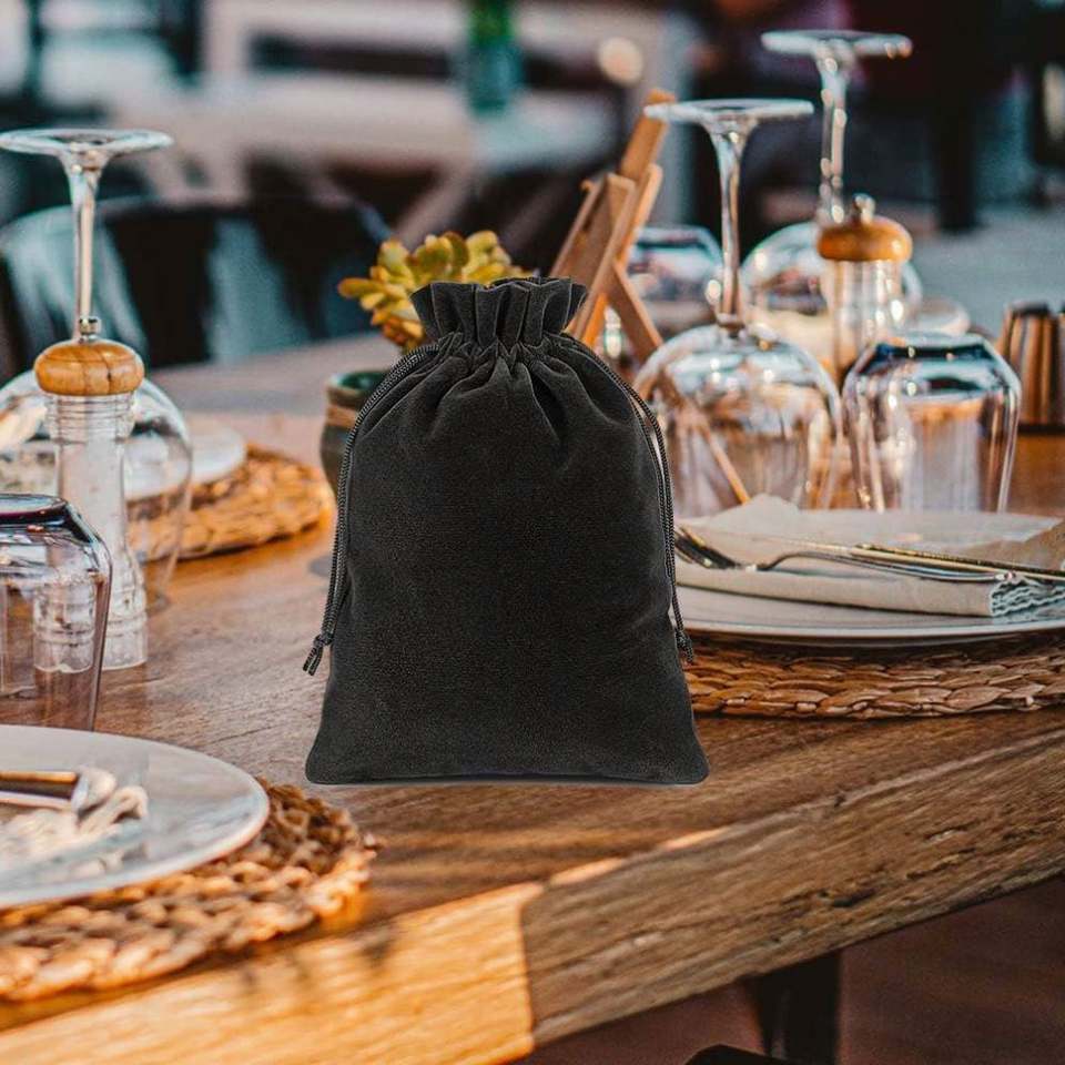 ถุงกำมะหยี่สีดำขนาดเล็กแบบมีเชือกผูก สำหรับใส่ของขวัญ ของชำร่วยงานแต่งงาน งานวันเกิด งานคริสต์มาส หูฟัง หรือขนม แบบ DIY