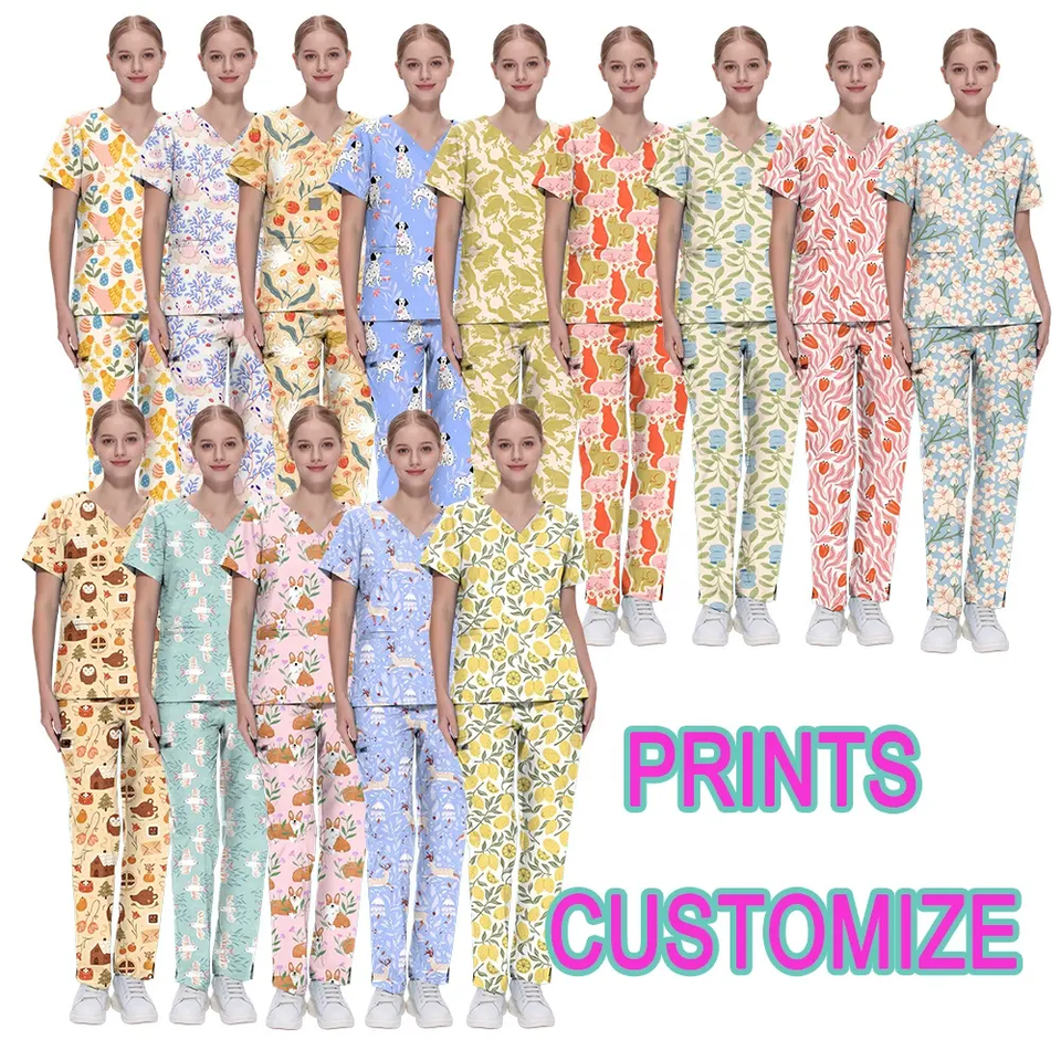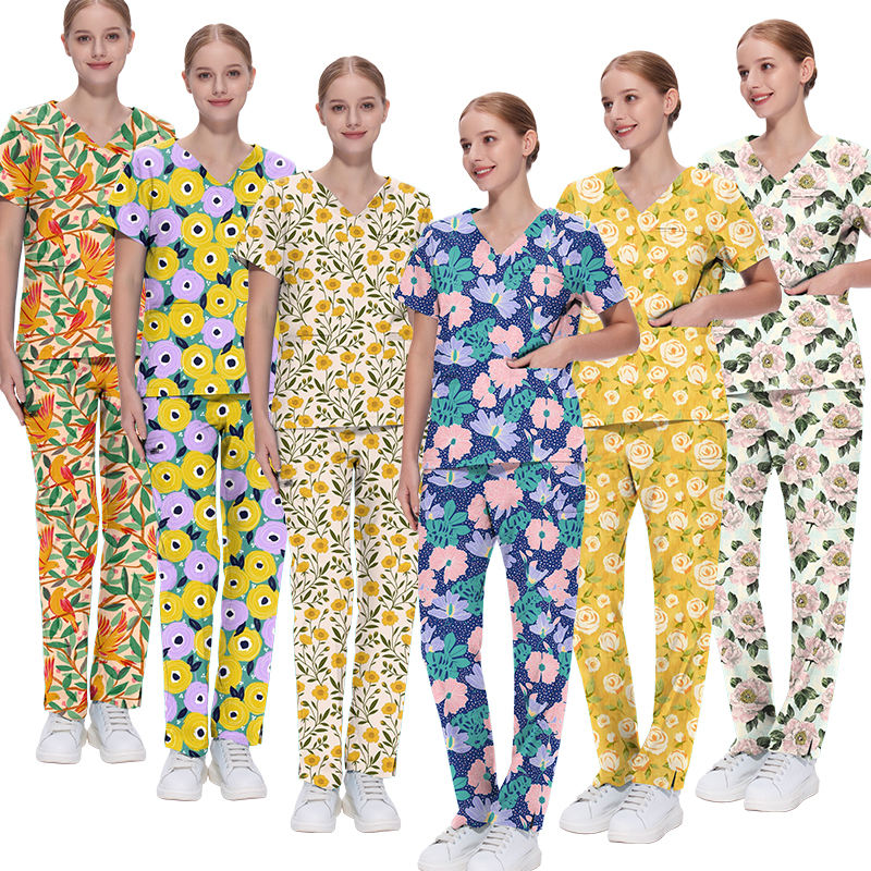 ชุดยูนิฟอร์มผ้าคอตตอนทางการแพทย์ชุดพยาบาลชุดพิมพ์ลายระบายอากาศได้ชุดยูนิฟอร์มสำหรับโรงพยาบาล