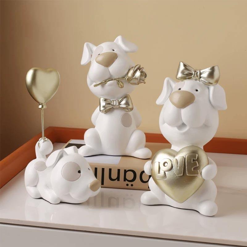 รูปปั้นสุนัขสามชิ้นวัสดุเรซินและของขวัญครอบครัวแบบสั่งทำรูปปั้นหลังแบนรูปการ์ตูนสำหรับสุนัข