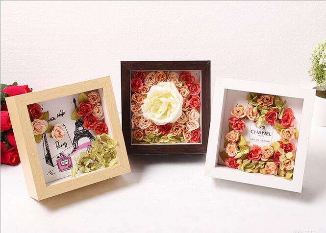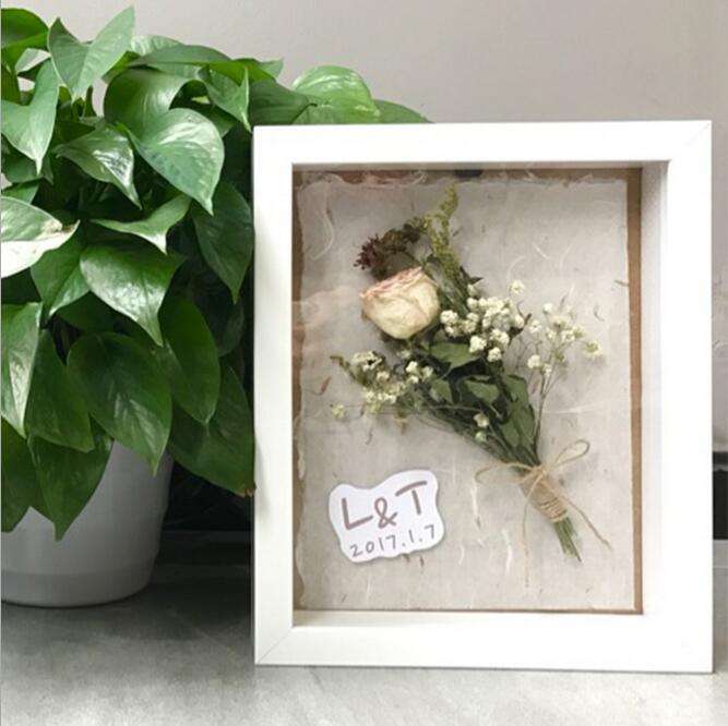 กรอบรูปดอกไม้ 3 มิติ แบรนด์ Custom Doremi แบบกล่องลึก ทำจากไม้สีขาว งานแฮนด์เมด สำหรับตกแต่งบ้าน ขายส่ง แบบเรียบง่าย