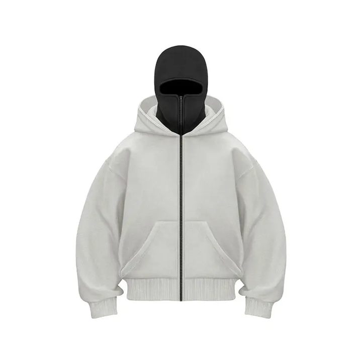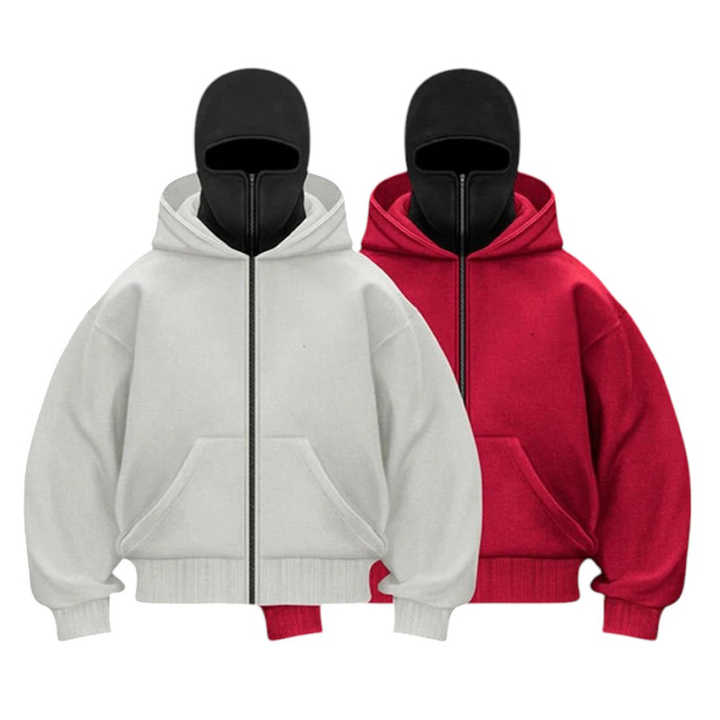 เสื้อฮู้ดกันลมพร้อมหน้ากากนินจาทรงหลวมและอเนกประสงค์สำหรับฤดูหนาวดีไซน์หมวกคู่ออกแบบได้ตามต้องการ