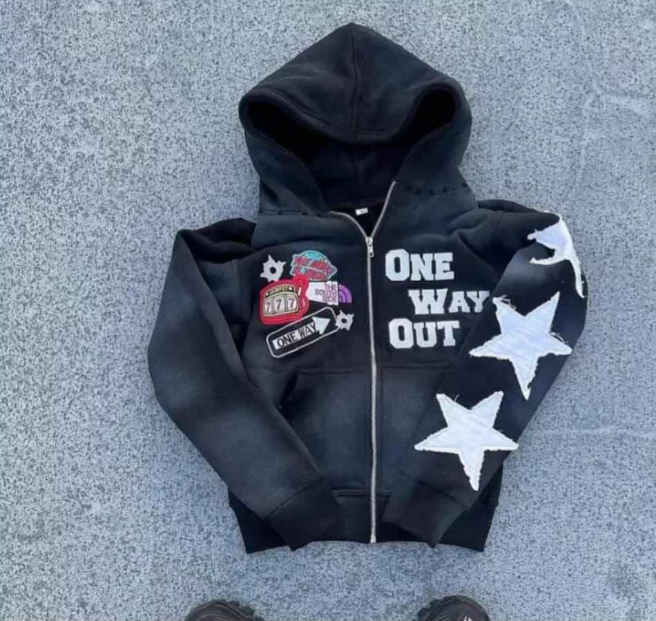 เสื้อแจ็กเก็ตมีฮู้ดสำหรับผู้ชายเสื้อครอปแบบวินเทจสองชั้นเสื้อถักแขนยาวปักลายกันแดดซีดมีซิป
