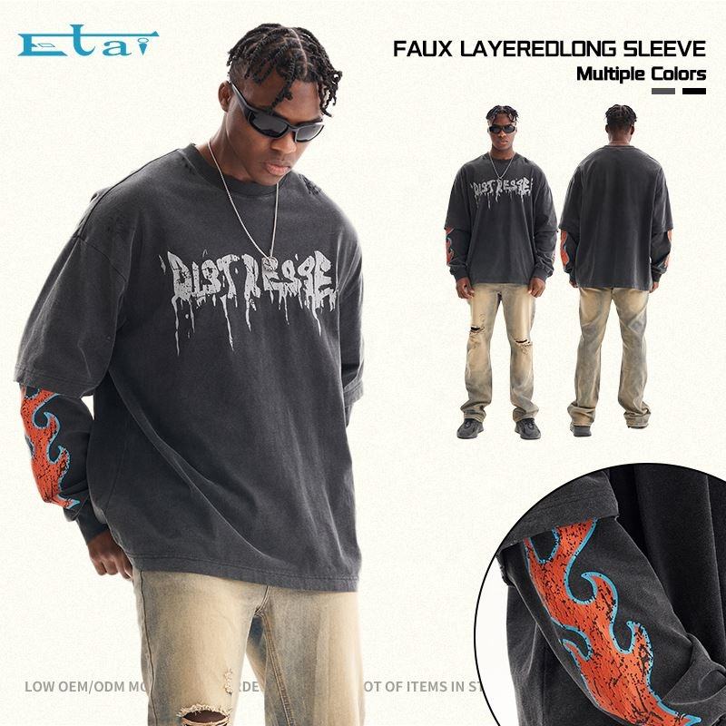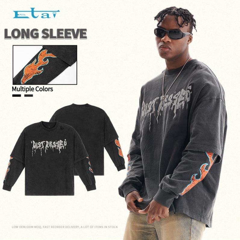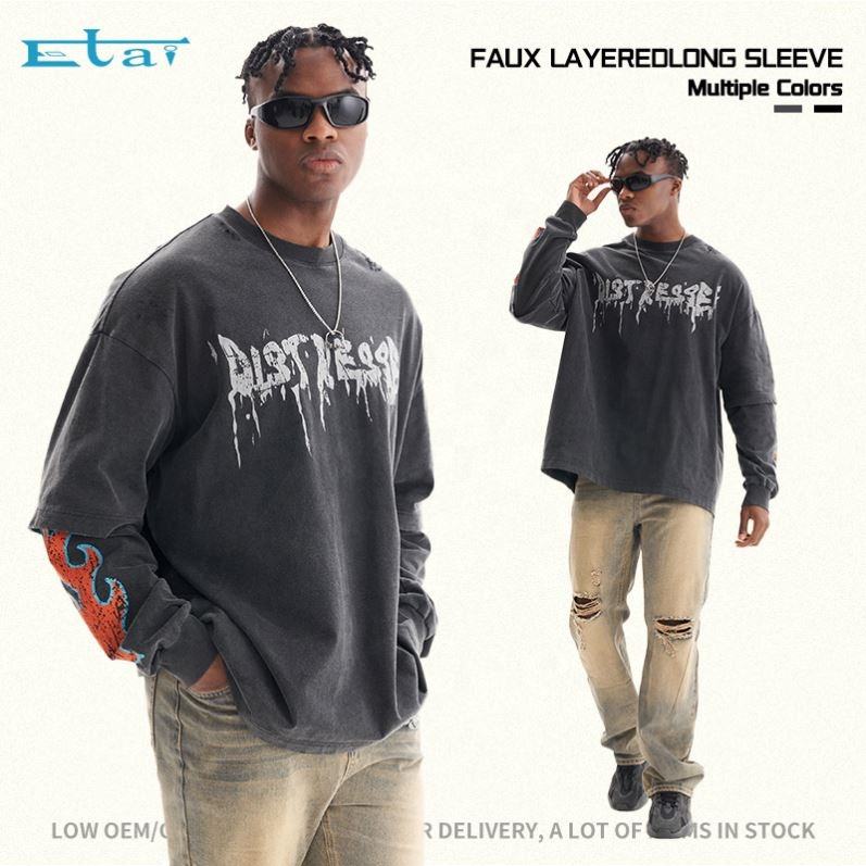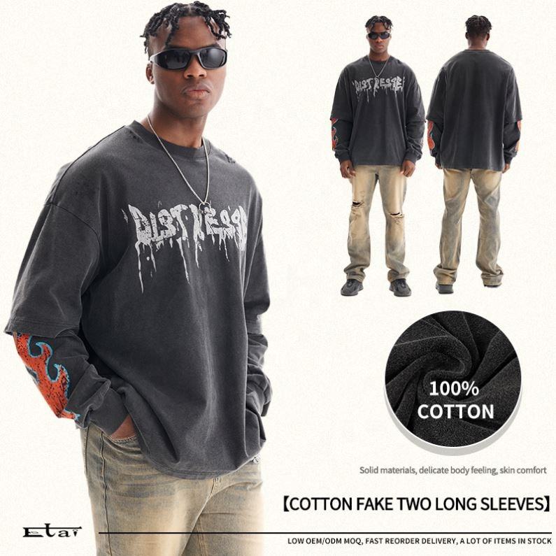 เสื้อยืดผ้าฝ้ายพิมพ์ลายกราฟิกสำหรับผู้ชายเสื้อยืดแขนยาวสองชั้น100% งานตามสั่ง