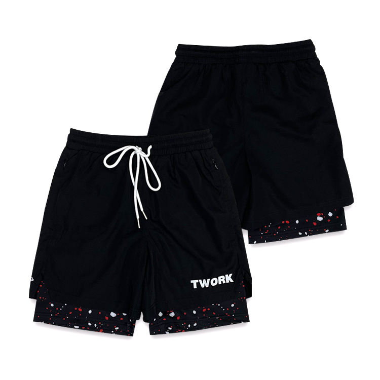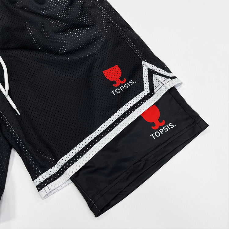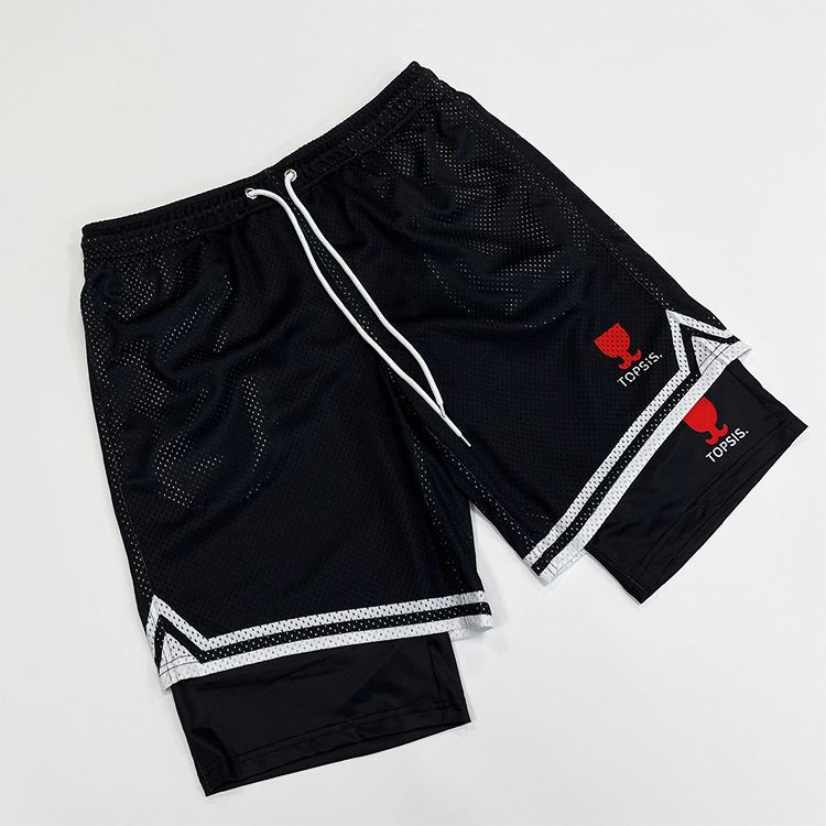 กางเกงขาสั้นสองชั้นพิมพ์ลายพิมพ์ซับลิเมชันสำหรับใส่ไปยิมกางเกงขาสั้นเล่นกีฬาบาสเก็ตบอลตาข่ายสำหรับออกกำลังกาย