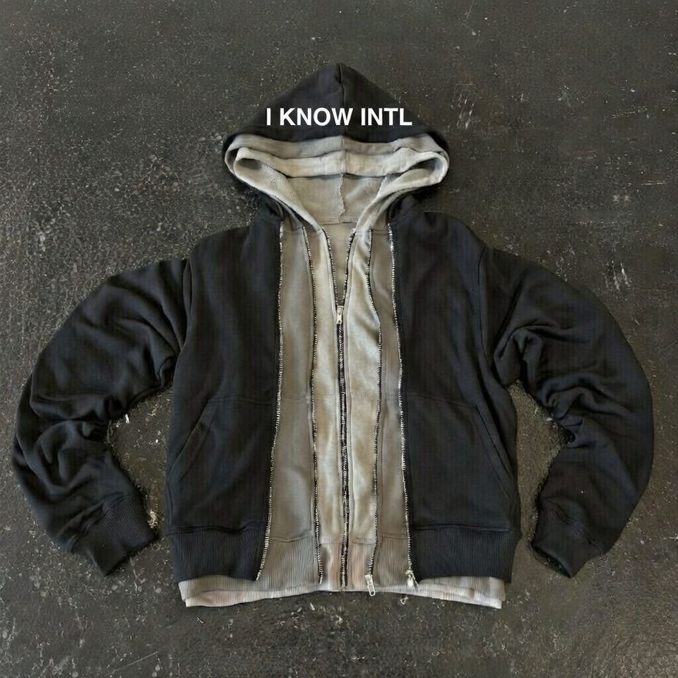 เสื้อฮู้ดซิปสองชั้นแบบสั่งทำพิเศษ สไตล์วินเทจ ลุคโอเวอร์ไซส์ สตรีทแวร์ ผ้าฝ้ายฟลีซหนานุ่ม สวมใส่สบาย ยูนิเซ็กส์ ขายส่ง