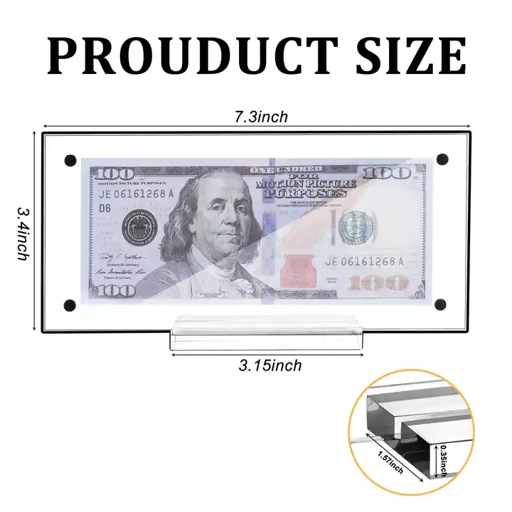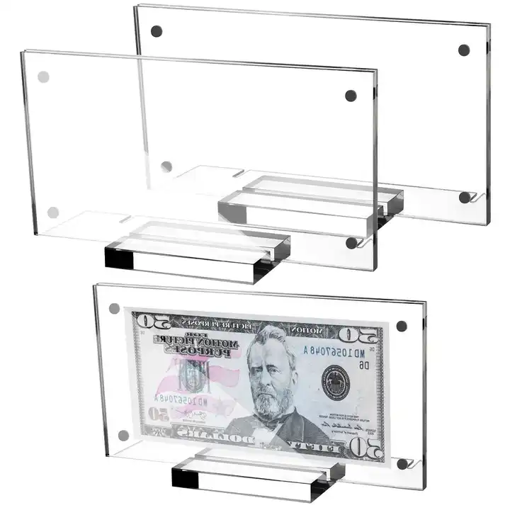 ที่ใส่ธนบัตรอะคริลิกสองชั้นแบบใสกรอบเงิน