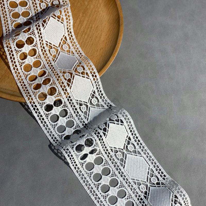 ผ้าลูกไม้ปักลายฉลุสองด้านแบบกำหนดเอง ขนาด 9.6 ซม. สำหรับเสื้อผ้า