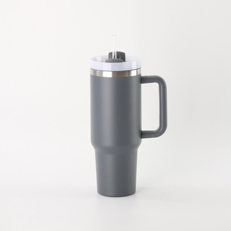 แก้วน้ำสแตนเลส40ออนซ์ผนังสองชั้นแบบพกพาถ้วยรถพร้อมที่จับและหลอดสำหรับการเดินทาง