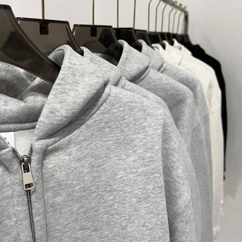 เสื้อมีฮู้ดแบบบ็อกซี่ฟิตรูดซิปคู่โอเวอร์ไซส์ผ้าฟลีซ350gsm วินเทจ