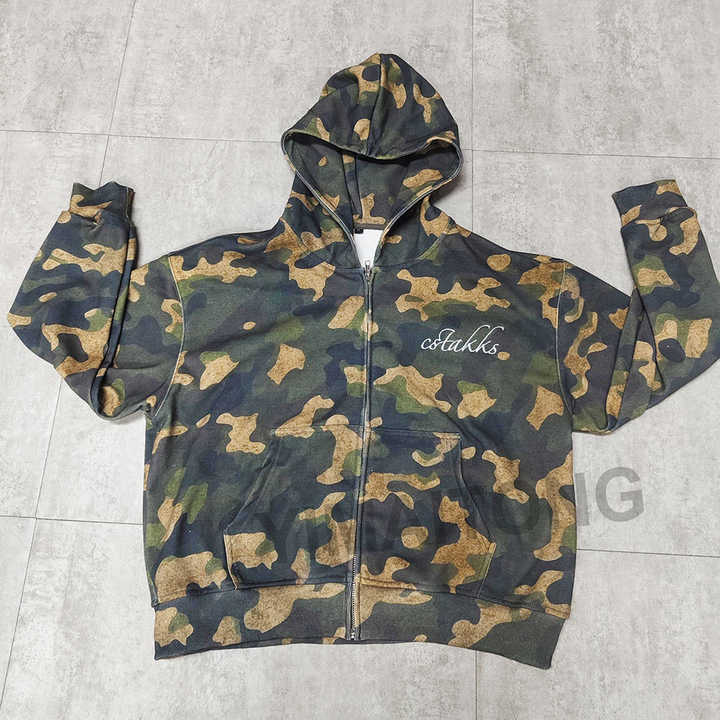 เสื้อกันหนาวมีฮู้ดสำหรับผู้ชายเข้ารูปบ็อกซี่เข้ารูปลายพรางสไตล์วินเทจผ้า420 GSM