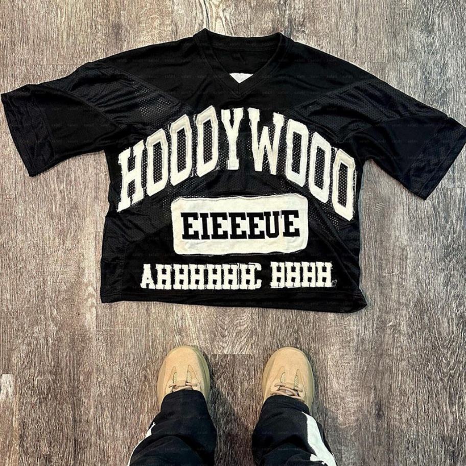 เสื้อยืดคอกลมทรงหลวมแบบดรอปโชลเดอร์ ผ้าคอตตอนหนา ตกแต่งด้วยงานปัก แอพพลิเค ปักเลื่อม ทรงบ็อกซี่ ครอป โอเวอร์ไซส์ สำหรับผู้ชาย