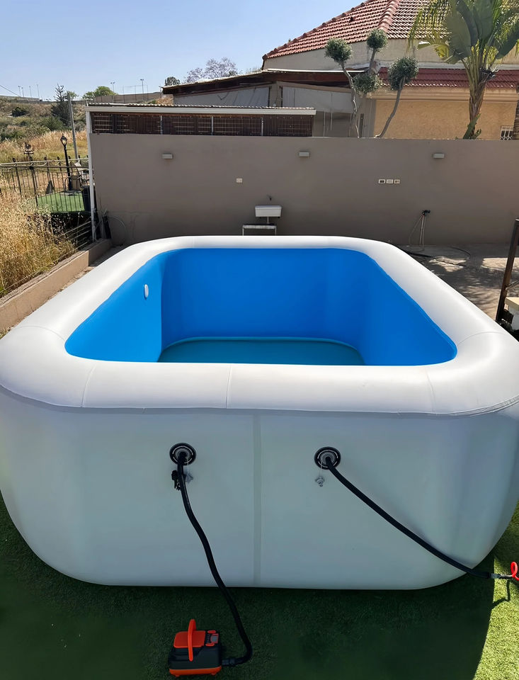 อ่างน้ำแข็งเป่าลมทรงสี่เหลี่ยม PVC แบบเย็บติดกันเอง พร้อมฟังก์ชั่นสปาอุ่น สำหรับแช่น้ำเย็นส่วนตัว