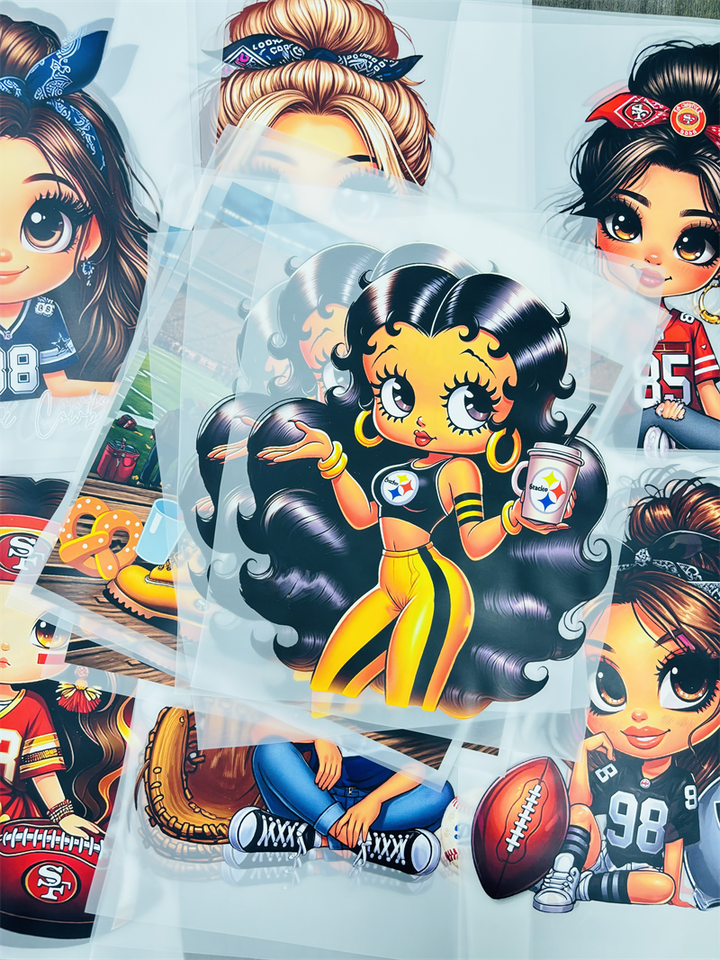 การถ่ายโอน DTF รีดบนสติกเกอร์ไวนิลการถ่ายโอนความร้อนการออกแบบพร้อมที่จะกดสำหรับเสื้อยืดและเสื้อฮู้ด
