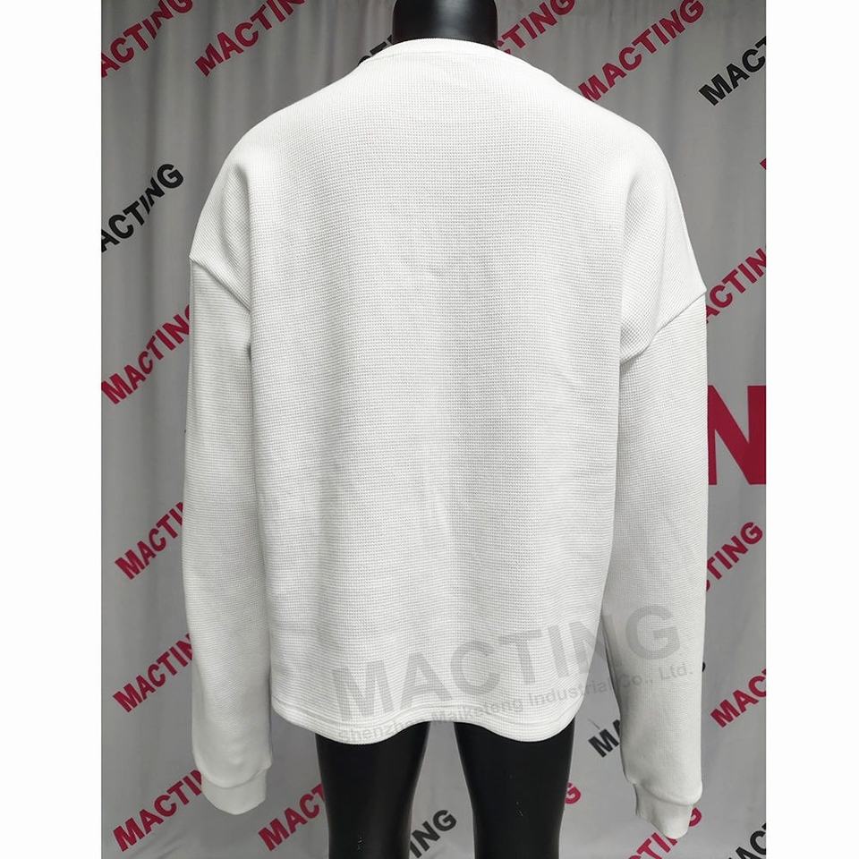เสื้อยืดพิมพ์ลายกราฟิกแบบ DTG สีขาว เสื้อแขนยาวผ้าเทอร์มอลสำหรับผู้ชาย เสื้อยืดแขนยาวทรงโอเวอร์ไซส์ผ้าวาฟเฟิล