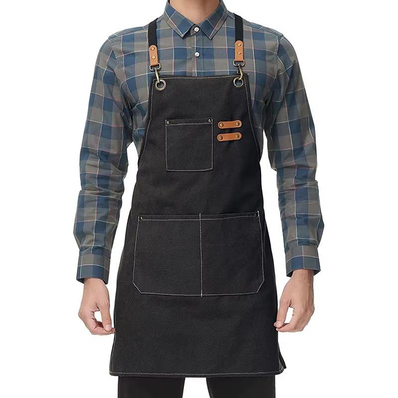 ผ้ากันเปื้อนผ้าแคนวาสเนื้อผ้าฝ้ายอย่างดี ทนทาน แบบไขว้หลัง มีกระเป๋า เหมาะสำหรับทำอาหาร อบขนม สำหรับผู้หญิงและผู้ชาย