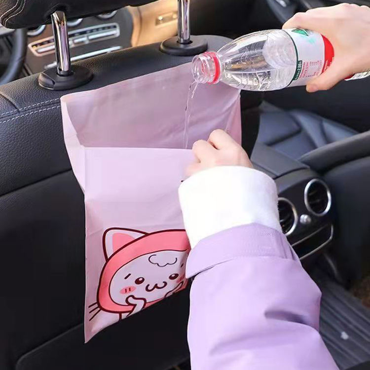 ถุงขยะพลาสติกสำหรับใช้ในรถยนต์แบบใช้แล้วทิ้งทนทานสำหรับใช้ในครัวห้องนอนเดินทางอาเจียนกันการรั่วกาวในตัว