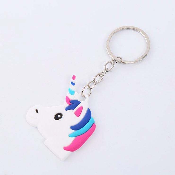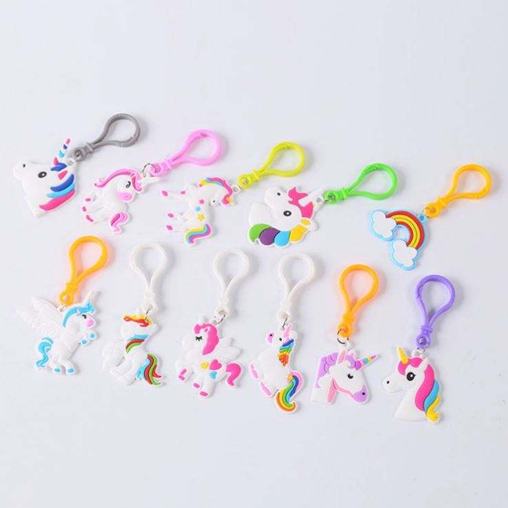พวงกุญแจยูนิคอร์นตุ๊กตาขนาดเล็กแบบกำหนดเอง ทนทาน ทำจาก PVC นุ่ม สีรุ้ง