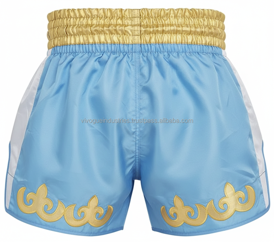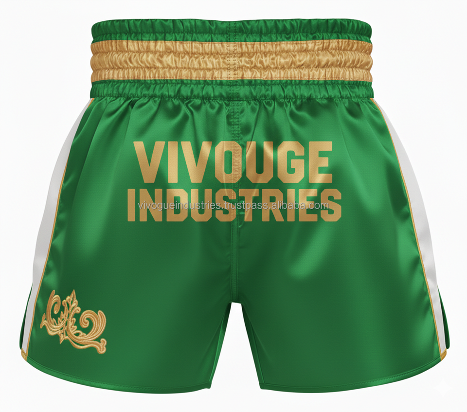 กางเกงมวยไทยแบบกำหนดเอง ทนทาน สำหรับมืออาชีพ พิมพ์ลายซิลค์สกรีน โพลีเอสเตอร์ 100% ขายส่งชุดคิกบ็อกซิ่ง