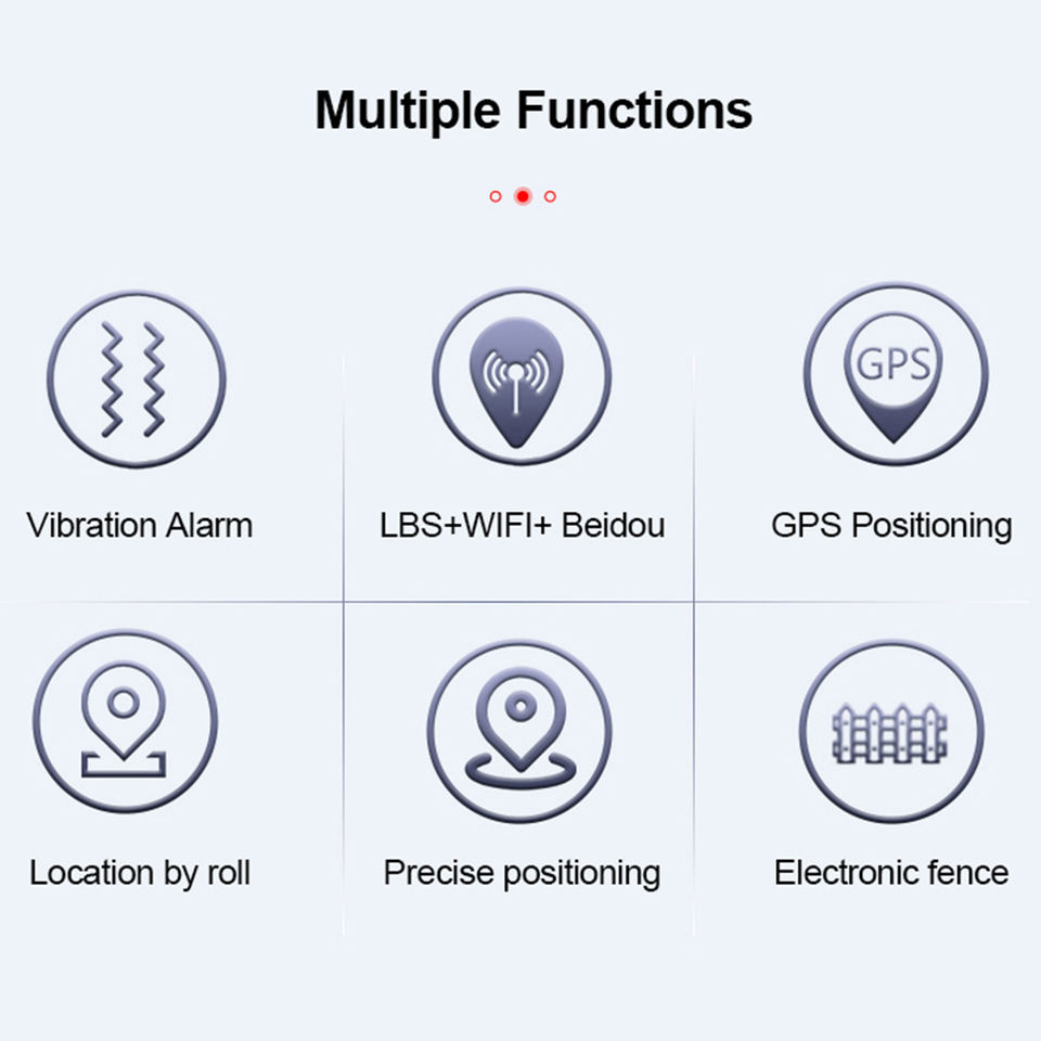 พลังงานสำรอง, เครื่องติดตามสุขภาพ, แอปควบคุมระยะไกล, ตำแหน่ง GPS, โหมดประหยัดพลังงาน, การติดตามเรียลไทม์, Geo รั้วปลุก, เครื่องติดตามการนอนหลับ, ฟังก์ชั่นที่กำหนดเองฟังก์ชัน