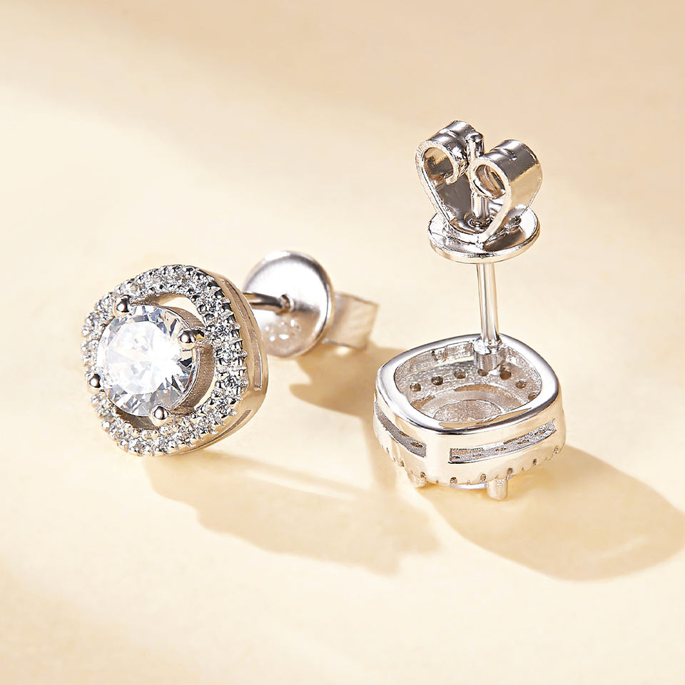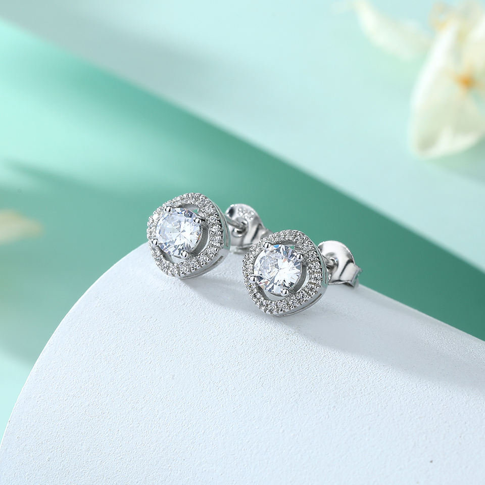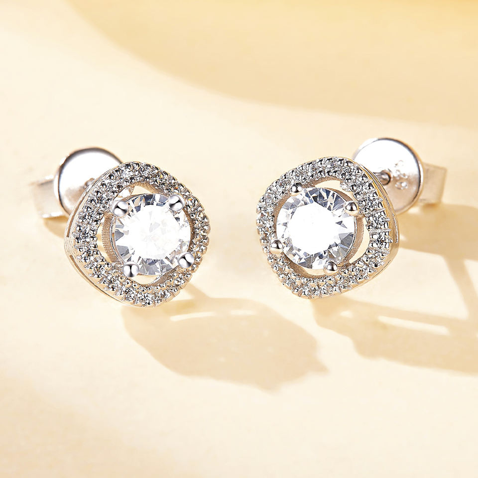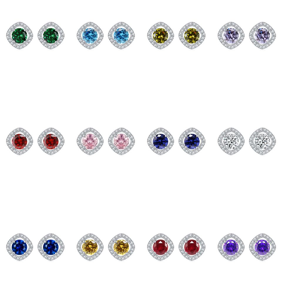 ต่างหูที่กำหนดเองกระดุมที่มีสีสันเซอร์โคเนียโอปอลสีแดงสีฟ้า CZ โรเดียมชุบ925ต่างหูกระดุมเงิน