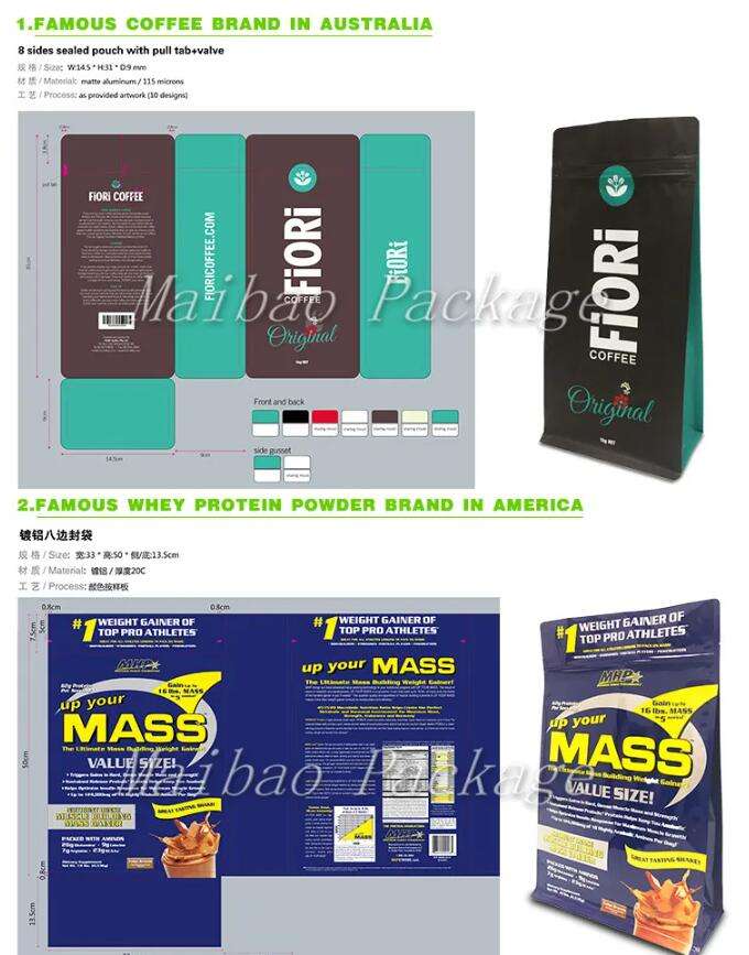 โครงสร้างวัสดุ:PET + vmpet + PE, BOPP + กระดาษคราฟท์ + vmpet + PE, ฯลฯ