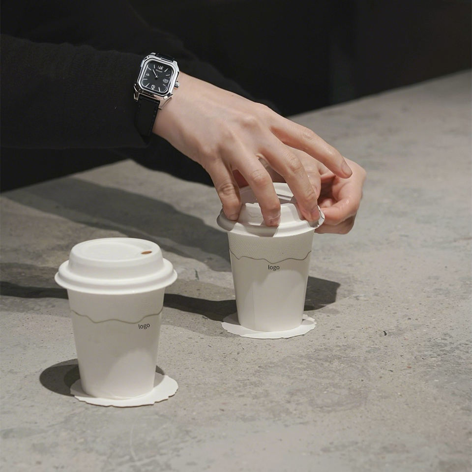 แก้วกาแฟกระดาษคราฟท์เยื่อชานอ้อยแบบสองชั้น ย่อยสลายได้ เป็นมิตรต่อสิ่งแวดล้อม รีไซเคิลได้ พร้อมฝาปิดแบบพิเศษ