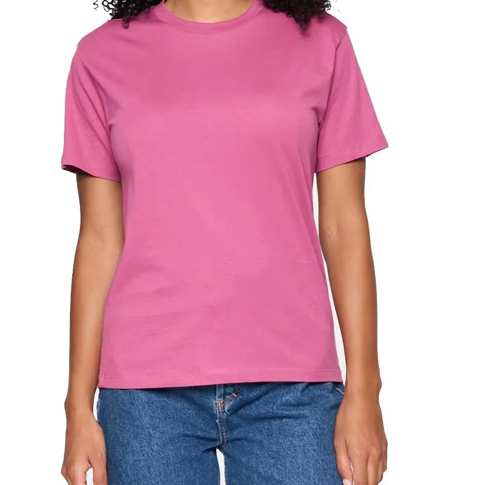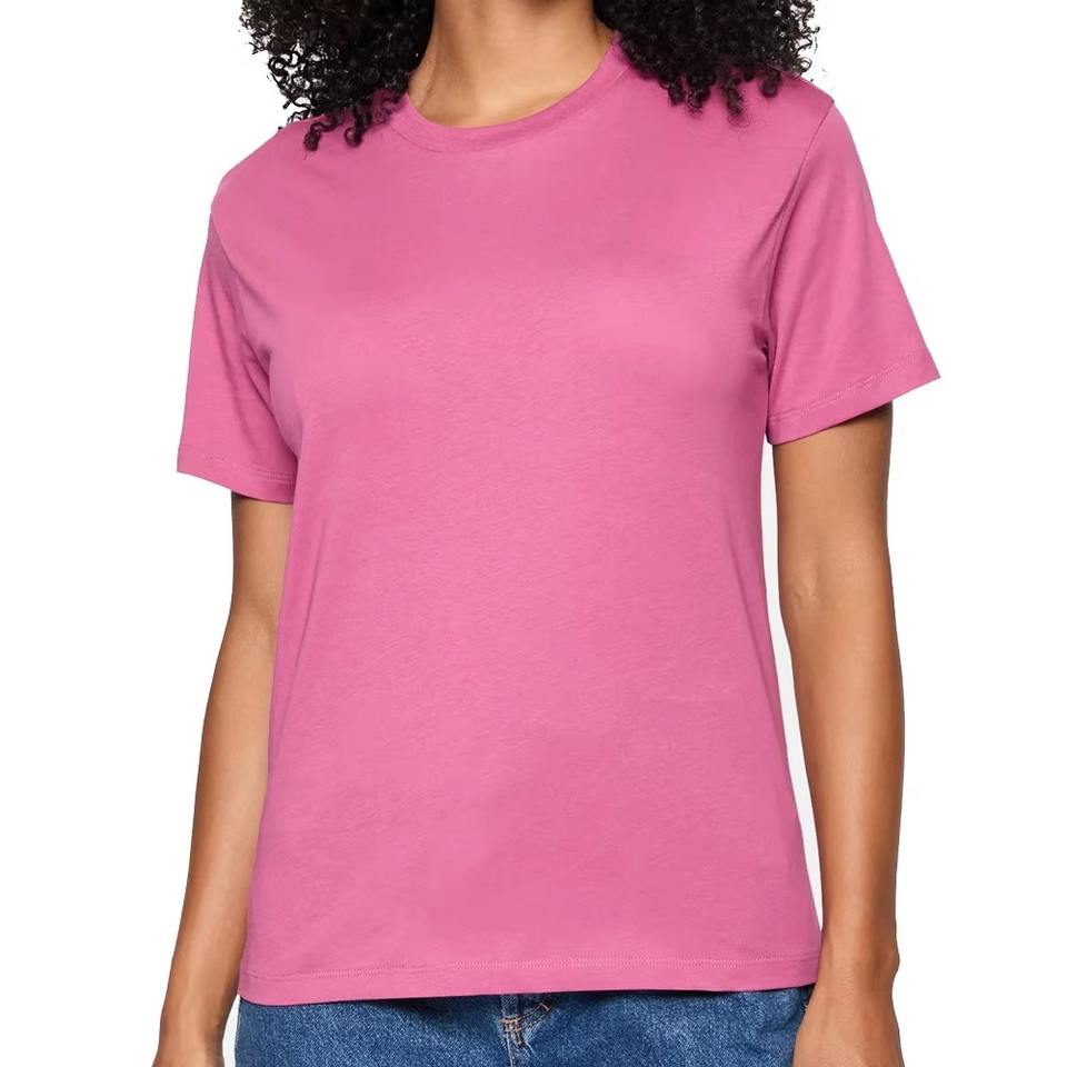 เสื้อยืดผู้หญิงผ้าฝ้ายถักแบบเรียบง่าย 100% เป็นมิตรกับสิ่งแวดล้อม ป้องกันรอยยับ แห้งเร็ว ระบายอากาศได้ดี คุณภาพสูง รับสั่งซื้อจำนวนมาก