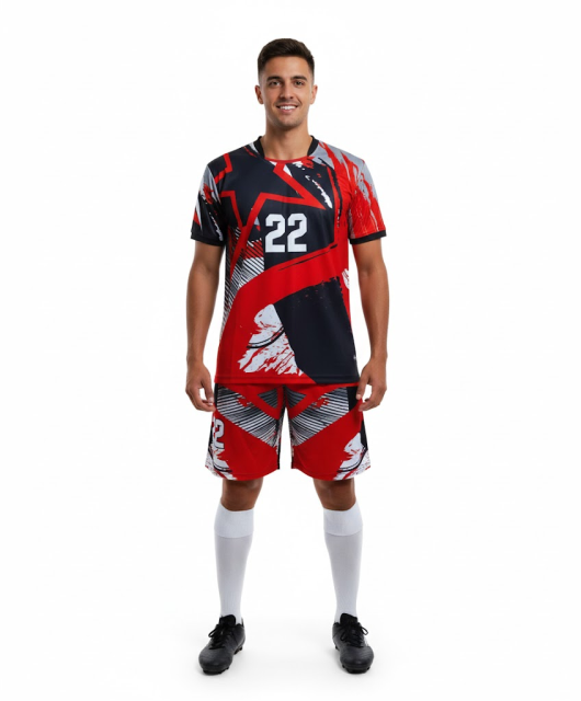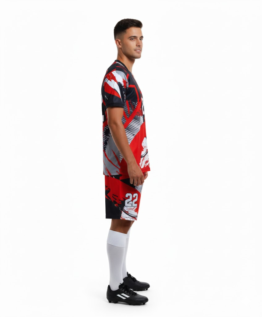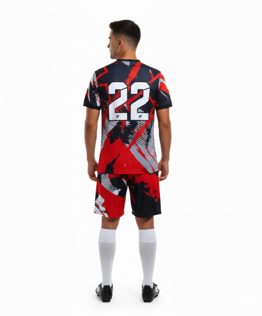 ชุดฟุตบอลแบบกำหนดเองเป็นมิตรกับสิ่งแวดล้อม ผลิตจากโพลีเอสเตอร์ 100% สำหรับสโมสร แห้งเร็ว ระบายอากาศได้ดี ชุดเสื้อและกางเกงขาสั้น ชุดกีฬา ชุดฟุตบอล