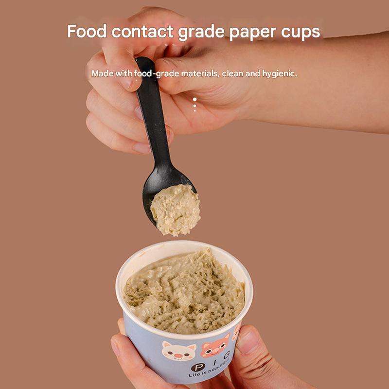 กล่องบรรจุภัณฑ์น้ำแข็งไสโยเกิร์ตแบบใช้ครั้งเดียวทิ้ง ย่อยสลายได้ เป็นมิตรกับสิ่งแวดล้อม สำหรับใช้ในเชิงพาณิชย์ และถ้วยกระดาษไอศกรีม