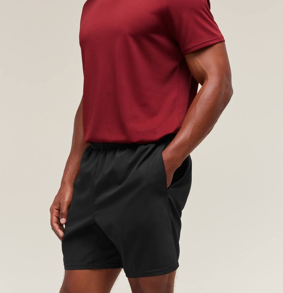 กางเกงขาสั้นระบายอากาศได้ดีมีกระเป๋าด้านข้างสีทึบมีกระเป๋าด้านข้างมีบริการ OEM ตามสั่งเป็นมิตรต่อสิ่งแวดล้อม