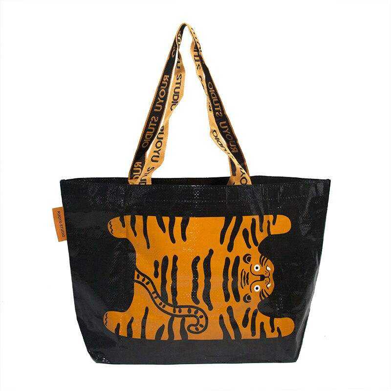 กระเป๋าเดินทางแบบดัฟเฟิลรักษ์โลก ผลิตตามสั่ง ปิดด้วยซิป มีหูหิ้วสะพายไหล่ ผลิตจากผ้าไนลอนนำกลับมาใช้ใหม่ได้ พิมพ์โลโก้เคลือบ PP ผ้าทอ PP สีตามสั่ง