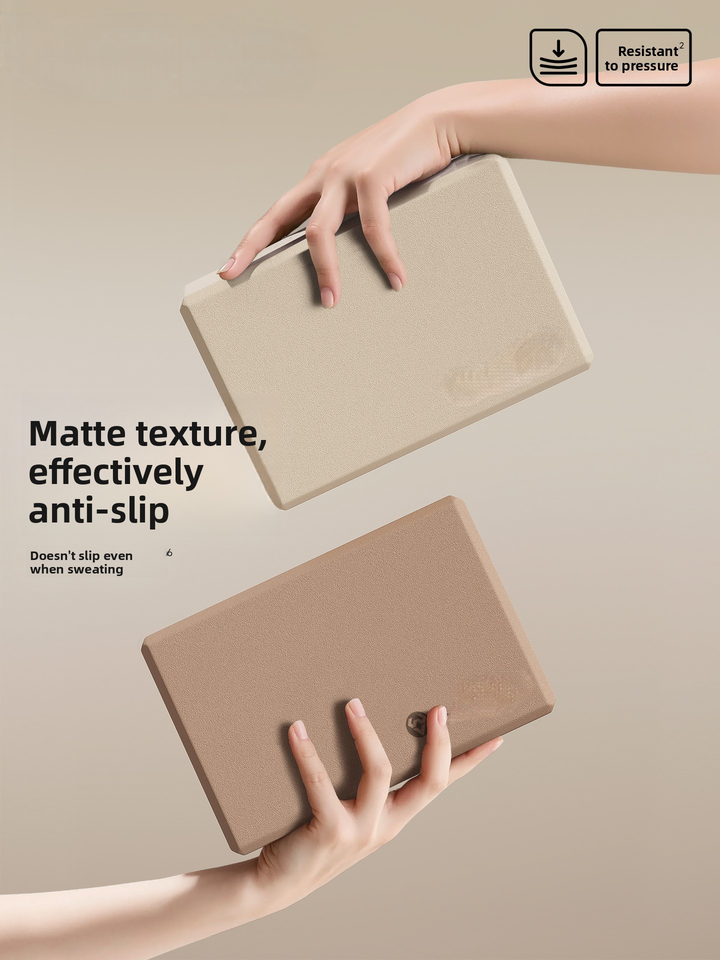 บล็อกโยคะโฟม EVA แบบกำหนดเอง เป็นมิตรกับสิ่งแวดล้อม ความหนาแน่นสูง กันลื่น สีเบจ พร้อมโลโก้