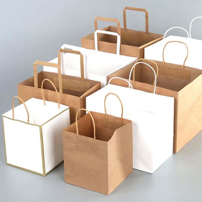 ถุงกระดาษคราฟท์สำหรับร้านอาหารแบบนำกลับบ้าน บรรจุภัณฑ์อาหารแบบนำกลับบ้าน ถุงกระดาษสำหรับส่งอาหารแบบเร็ว เป็นมิตรกับสิ่งแวดล้อม แบบกำหนดเองได้