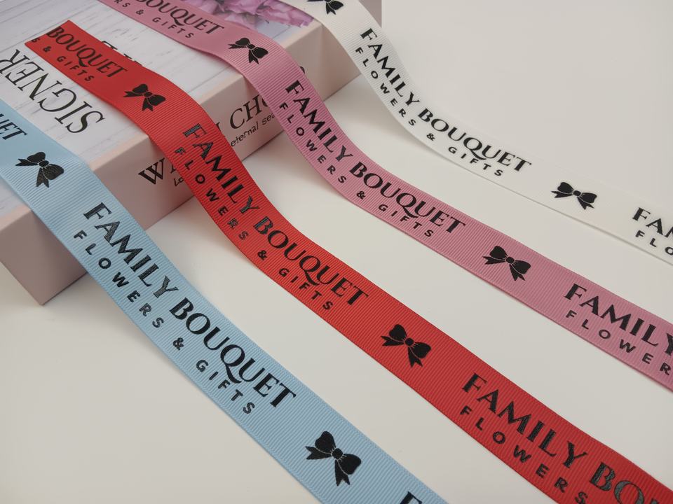 ริบบิ้นผ้ากรอสเกรนพิมพ์ลาย
