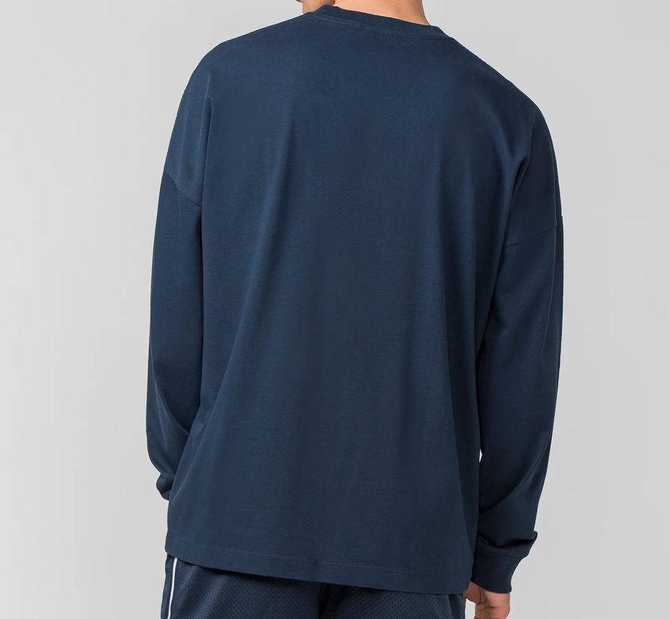 เสื้อยืดแขนยาวลายวาฟเฟิลแบบหนาเป็นมิตรกับสิ่งแวดล้อมสำหรับผู้ชาย ผลิตจากผ้าโพลีเอสเตอร์ผสมคอตตอน สีขาว จำนวนมาก พร้อมลายกราฟิกพิมพ์เต็มตัว