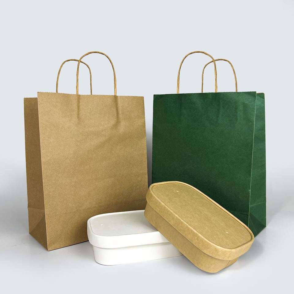 ถุงกระดาษคราฟท์รักษ์โลกแบบมีหูหิ้ว สำหรับใส่อาหาร ของขวัญ ซูชิ นม พิซซ่า นำกลับบ้าน ทำจากวัสดุรีไซเคิล