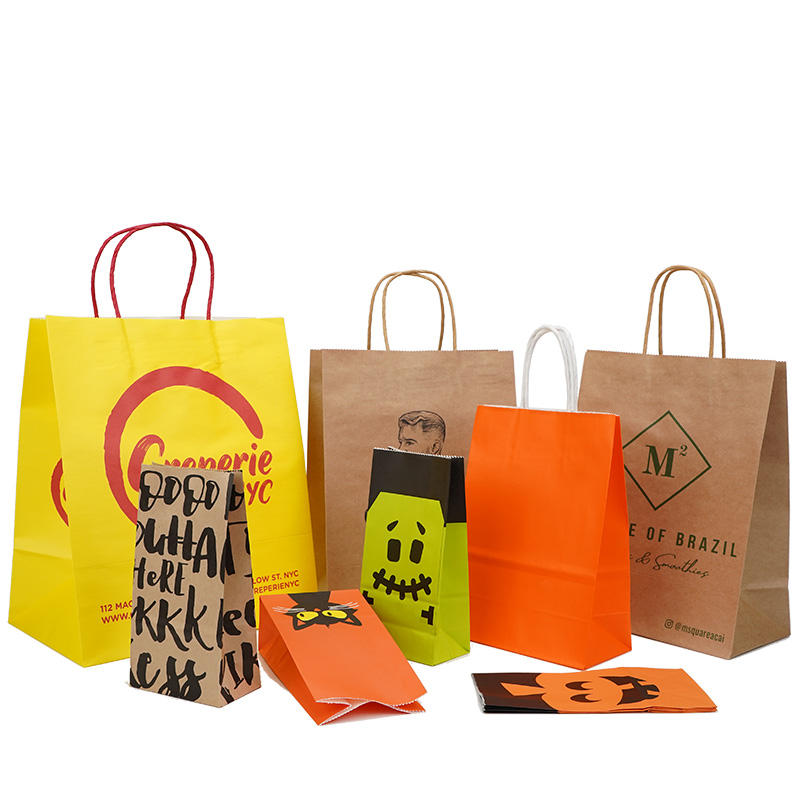 ถุงกระดาษคราฟท์รักษ์โลกแบบกำหนดเองพร้อมหูหิ้วแบบเกลียวสำหรับการค้าปลีกและของขวัญ