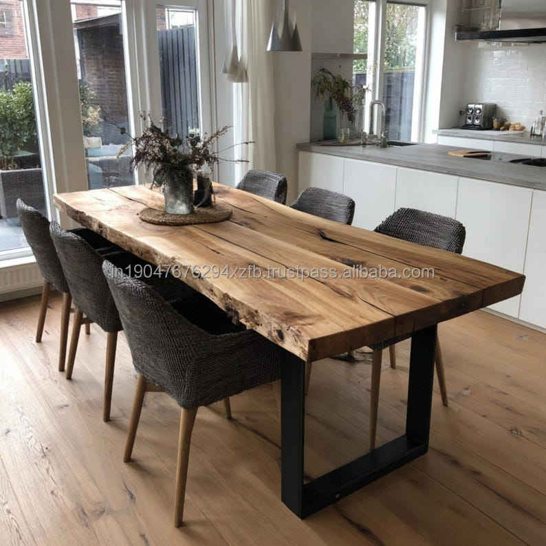 โต๊ะอาหารทรงสี่เหลี่ยมแบบโมเดิร์น ขอบไม้ธรรมชาติ ทำจากไม้วอลนัทแท้ สไตล์เรียบง่ายหรูหรา เหมาะสำหรับบ้านพักอาศัยหรืออพาร์ทเมนท์