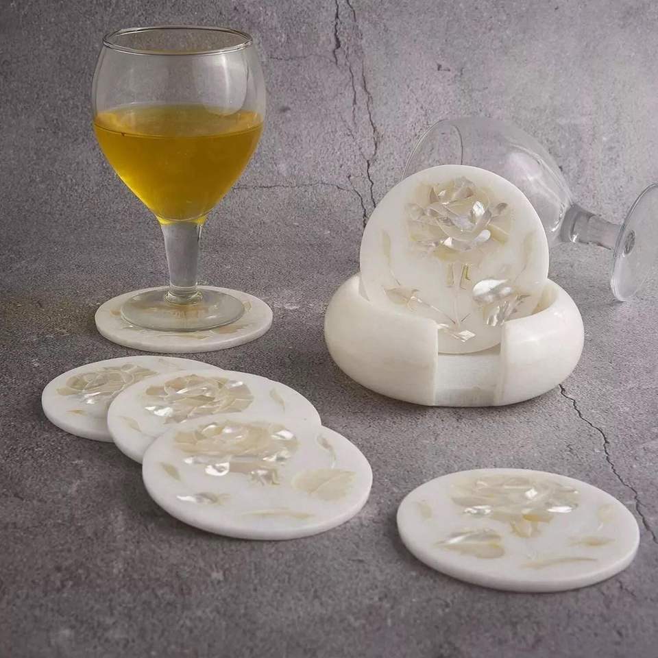 แผ่นรองแก้วหินอ่อนแบบกำหนดเอง เป็นมิตรกับสิ่งแวดล้อม ทนทาน ล้างทำความสะอาดได้ ทำจากหินธรรมชาติ พร้อมตัวเลือกสกรีนโลโก้ สำหรับใช้เป็นของแจก