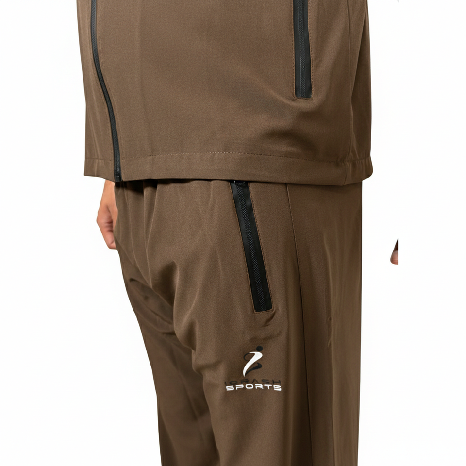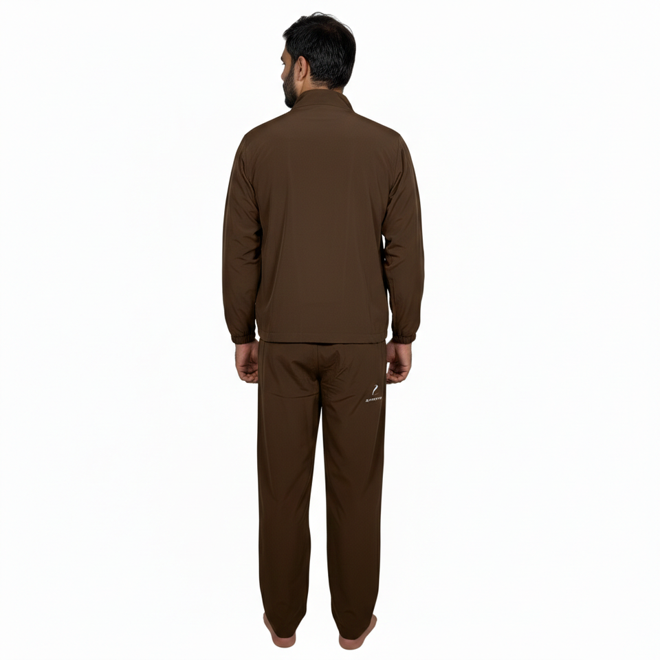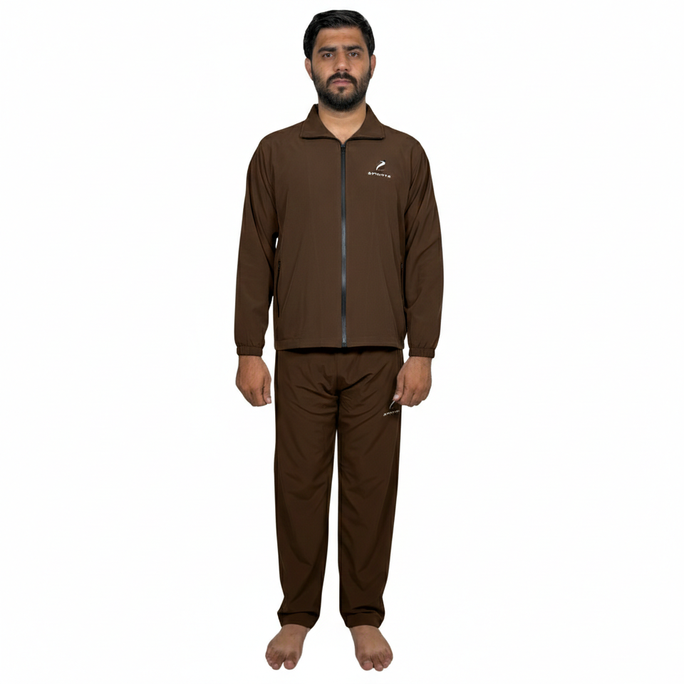 ชุดวอร์มกีฬาผู้ชายแบบสปอร์ตทรงเข้ารูป สีพื้น น้ำหนักเบา ผลิตจากโพลีเอสเตอร์/คอตตอน ป้องกันแบคทีเรีย เป็นมิตรต่อสิ่งแวดล้อม