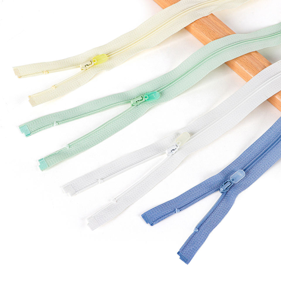 ซิปโลหะแบบสองด้านเป็นมิตรต่อสิ่งแวดล้อมอุปกรณ์เสริมเสื้อผ้าไนลอนดีไซน์ม้วนพลาสติกปลายเปิด3 #/5 # มีหลายขนาดให้เลือก