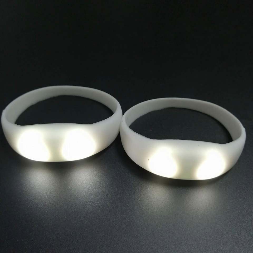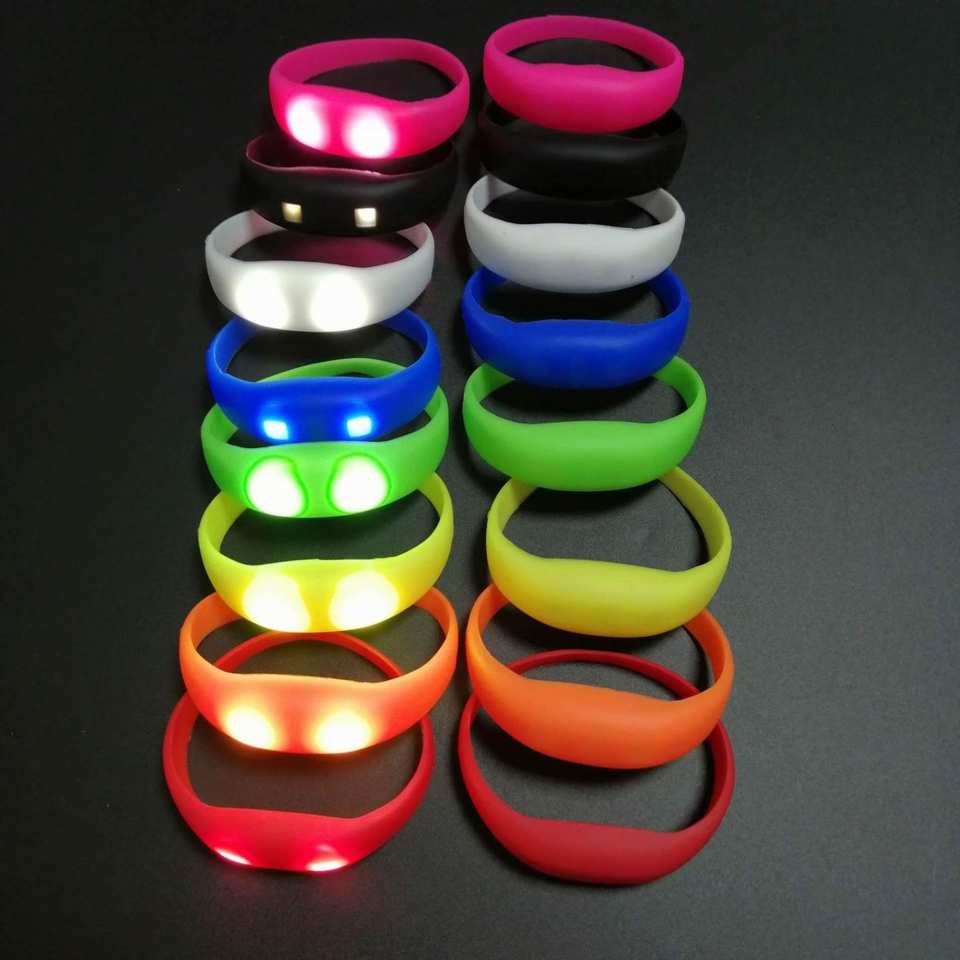 กำไลเรืองแสงแบบกำหนดเอง เป็นมิตรกับสิ่งแวดล้อม ตอบสนองต่อเสียงเพลงและเสียงรอบข้าง สำหรับเด็กและผู้ใหญ่ พร้อมไฟ LED กระพริบ - ของชำร่วยงานปาร์ตี้ที่สมบูรณ์แบบ