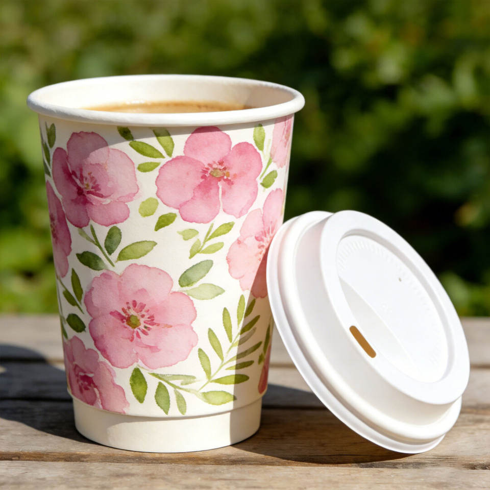 แก้วกระดาษรักษ์โลกแบบกำหนดเองสำหรับเครื่องดื่มร้อนเย็น แก้วกระดาษแบบใช้แล้วทิ้งสองชั้นฉนวนกันความร้อน
